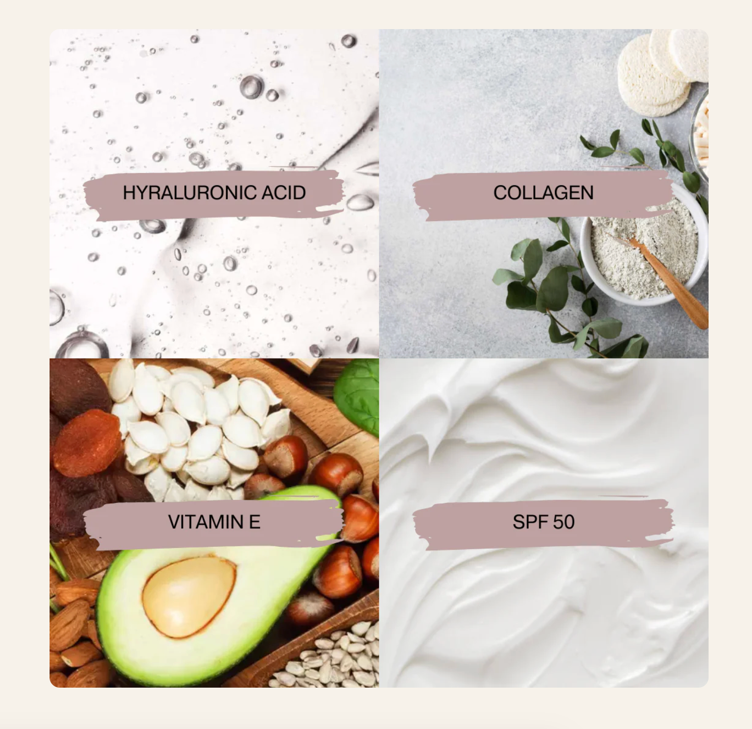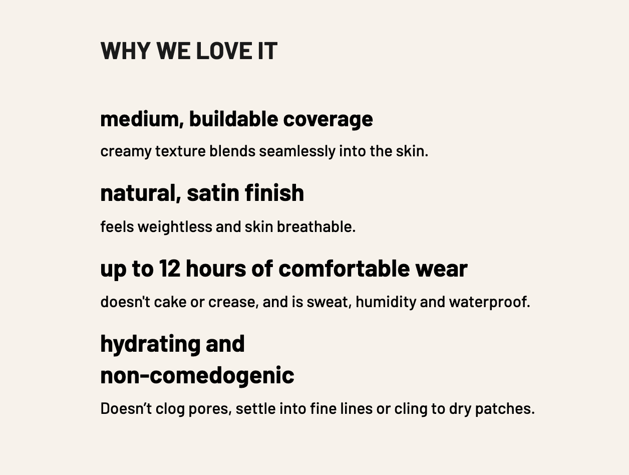 Our 4-in-1 liquid foundation is crafted with nourishing ingredients that hydrate, protect, and enhance your complexion. Enriched with botanical extracts, lightweight oils, and SPF 50+ for daily sun protection, it leaves your skin soft and beautiful. Our foundation is suitable for all skin types.